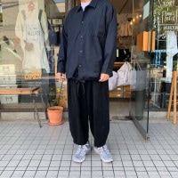 身幅の広いオーバーサイズのシャツ。裾部分に杉綾テープを通しているので、裾部分を絞って着用いただける仕様。その日の気分に合わせてアレンジして着用ください。オススメは少し緩めに絞ってやや裾が縮まったバルーンのようなシルエットが良い感じ。