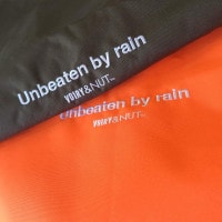 目隠し布中央部には「Unbeaten by rain」の刺繍が入っています。