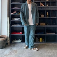 今回はVOIRYの新たな人気パンツSCHOOL PANTSをジャケットとセットアップ。ジャケットは身幅広めのオーソドックスジャケット、パンツはウエストにタックを入れ、裾に小さなスリットを入れたいつものSCHOOL PANTS。