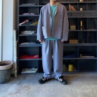 今回はVOIRYの新たな人気パンツSCHOOL PANTSをジャケットとセットアップ。ジャケットは身幅広めのオーソドックスジャケット、パンツはウエストにタックを入れ、裾に小さなスリットを入れたいつものSCHOOL PANTS。