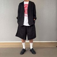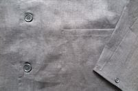 シャリ感のあるリネン素材のジャケット。身幅広め、アームホール広めのVOIRY定番商品JACKETPANTSのジャケットの型を採用してます。胸ポケット、裾ポケットがあります。